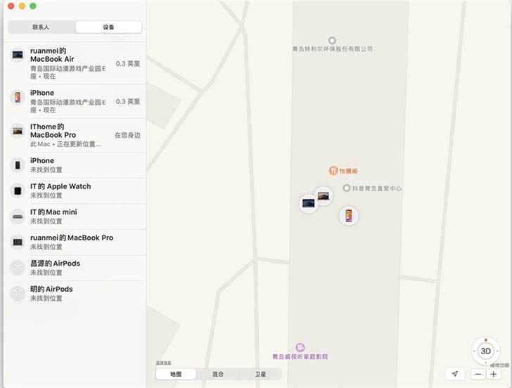macOS Catalina 10.15中還推出了一款全新的查找App,也和iPhone中類似,是“查找我的iPhone”和“查找我的朋友”的整合,它可以幫助你定位遍尋不見的Mac,即使設備處于離線狀態或正在睡眠也沒問題,它會令Mac發出藍牙信號來讓附近正在使用的蘋果設備檢測到,這些設備會將你Mac的位置傳給iCloud,然后你就可以在《查找》App中看到Mac的位置在哪里了。