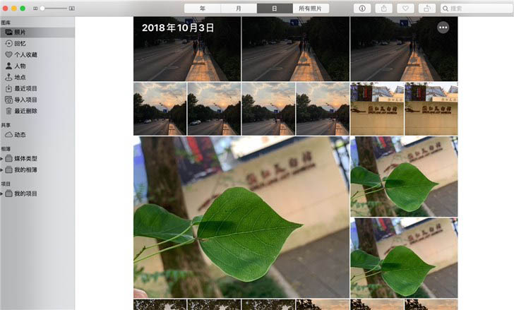 另外,在macOS Catalina 10.15中,還有一些系統自帶應用的改變,可以帶來更好的體驗。例如《照片》應用的外觀布局都發生了改變,新的應用下,相冊里出彩的照片會以大預覽圖展示,此外,你可以按天、月、年瀏覽喜愛的照片,而且所有照片都能放大來預覽。這種變化和iOS 13中照片應用的變化是同一個邏輯,這樣可以讓照片的排布看起來更靈活,也適合用戶去尋找一些比較好的照片——相冊中以大縮略圖展示的照片確實都挺不錯的,應該是系統AI識別的結果。