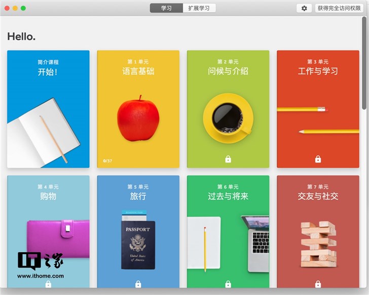 第二款應用是《Rosetta Stone:學習英語》,這款應用的界面布局也頗有iPad平臺的風格,當然,各項功能也都是可以正常使用的。