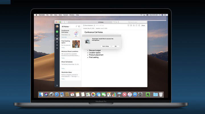 在 macOS Mojave 中,當新應用需要調用地理位置、攝像頭、麥克風等涉及用戶隱私的功能時,系統將對用戶發出提醒。