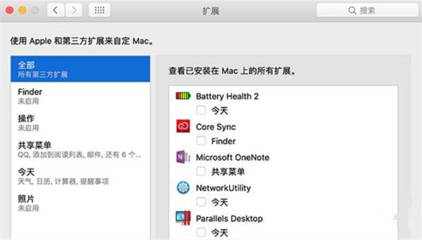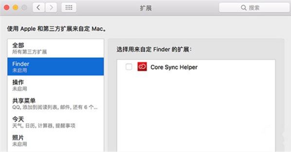 二:進入系統偏好設置,在“擴展”中關閉Core Sync和Core Sync Helper。