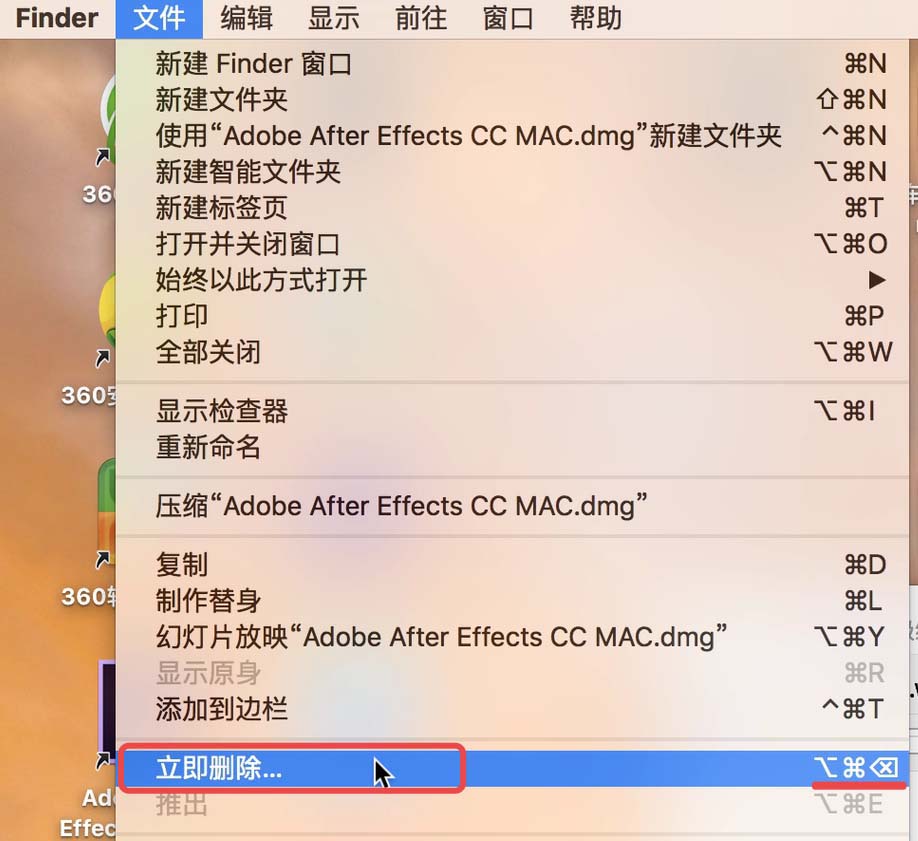 這時候我們按住Option鍵,發現“移到廢紙簍”變成了“立即刪除”。
