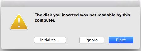 diskutil eject /dev/disk2一旦彈出,點擊對話框上忽略按鈕,可啟動USB磁盤已經創建好。