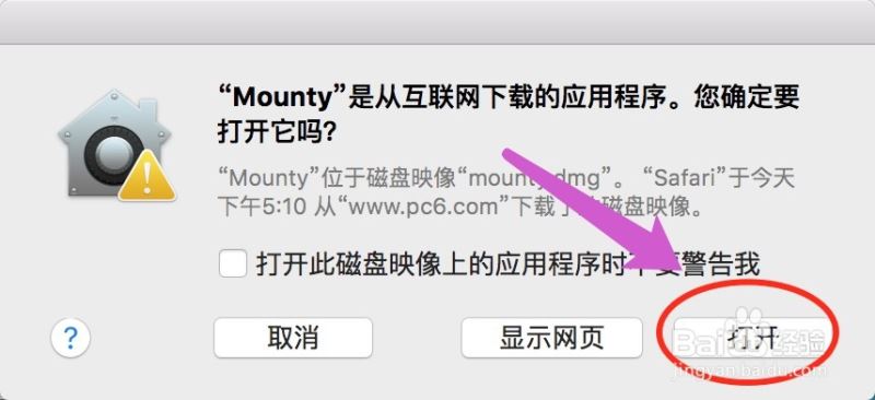 5、點擊mounty.dmg,進行鏡像的安裝,會提示讀寫方式掛載