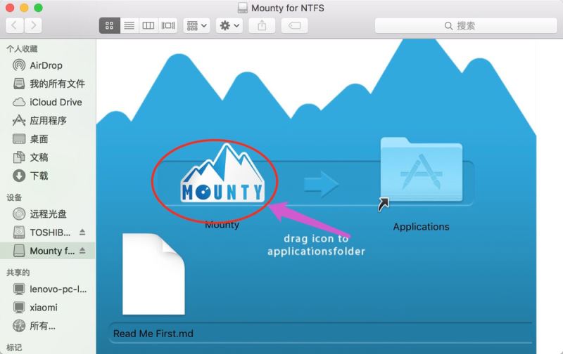 4、使用第三方軟件mounty,讓 Mac 采用 NTFS 分區的硬盤寫入數據,如圖: