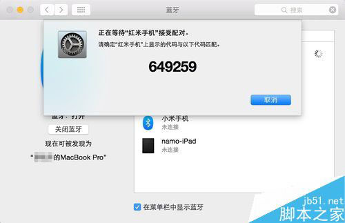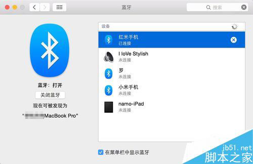 ok,手機已配對列表中已經出現了我們的macbook,我們再查看mac上是否已連接?