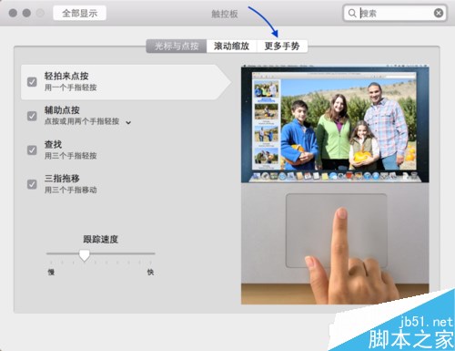 在觸控板設置窗口點擊“更多手勢”欄目,如圖所示