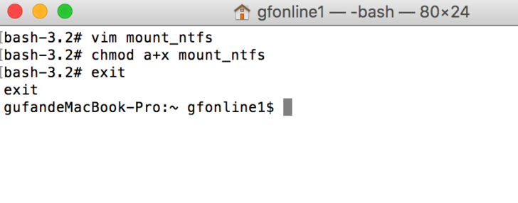 修改掛載文件權限:chmod a+x mount_ntfs,退出root:exit