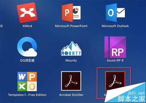 1、打開mac電腦上面的Acrobat軟件,這是一款專業的pdf編輯軟件。這款軟件的功能有:給pdf添加目錄,提取單頁的pdf,合并多頁的pdf,刪除單頁的pdf。