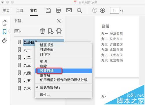 8、將所有書簽目錄,都設置目標到對應的頁面。即可實現pdf目錄的添加效果。