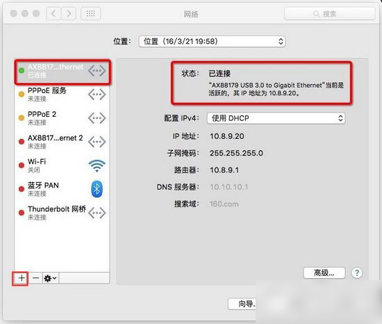 第三,在網絡設置界面,添加網絡連接。創建一個以該網卡為接口的網絡,值得注意的是,WiFi和有線網絡不能同時使用!在創建有線網絡時,請關閉WiFi。具體的操作過程請參考網卡轉換器廠商提供的教程,因為每個網卡轉換器的設置過程有些許不同。