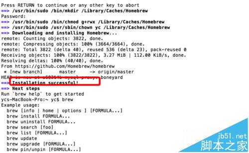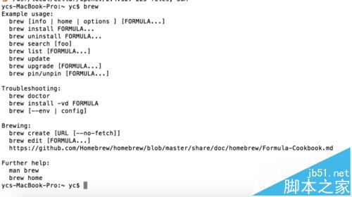 6、此時可以在命令行中輸入命令brew進行測試,可以看到如下結果,說明安裝成功。