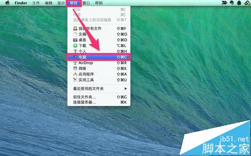1、在Mac桌面最上方的菜單欄中,找到“前往”這一項并點擊一下。