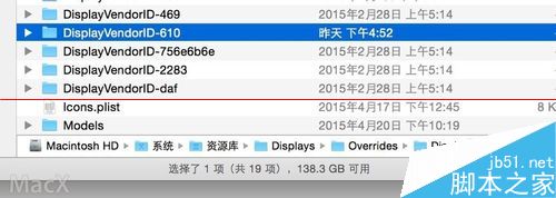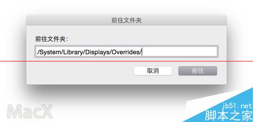 2、下面點擊 Finder 然后按快捷鍵 Command-Shift-G 輸入 /System/Library/Displays/Overrides/ 點擊前往,你會看到文件夾內有結尾為 610的文件夾. 比如 DisplayVendorID-610