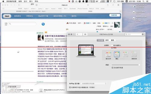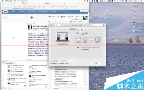 5、開啟 1680x1050 的 HiDPI 高清晰模式的效果. 明顯桌面的操作區域要大了很多. 在12英寸的屏幕上, macx的網頁只需要一半多的屏幕區域占用. 這對于做圖或者剪輯的同學來說更大的工作區域可以有更多的可操作空間.