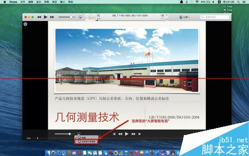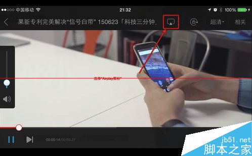 6、選擇您要播放的視頻,選擇“Airplay圖標“,在彈出的菜單中,選擇您的大屏智能電視。