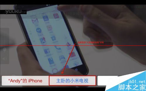 3、按照圖片上得步奏,選擇“Airplay圖標“,在彈出的菜單中,選擇您的大屏智能電視。