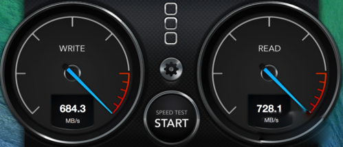 3、在測試的時候,上方二個儀表盤會顯示當前正在測試項目的讀寫速度。左邊 Write 為寫入速度,右邊 Read 為讀取速度。