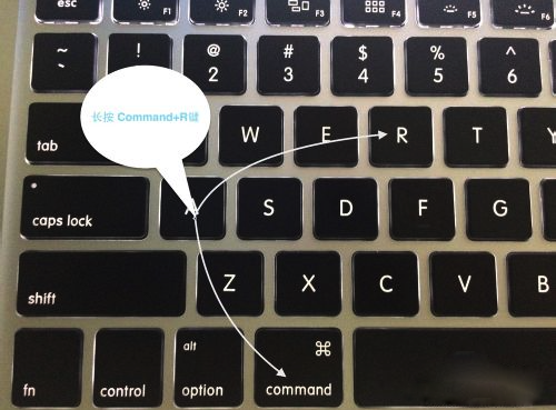 1、上面的方法是直接在 Mac 系統中進行修復,有時候會碰到一些問題不能直接在系統中修復,需要進入 Recovery 模式去恢復。這時請重新啟動 Mac 系統,并按下鍵盤上的 Command+R 鍵,如圖所示
