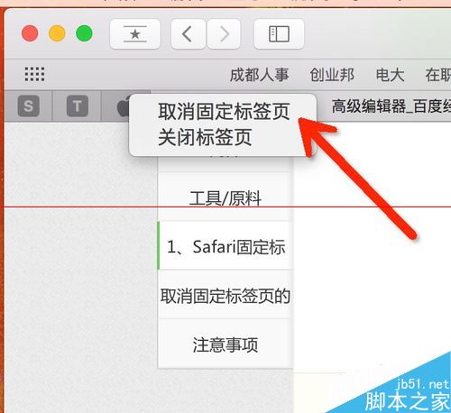第一種辦法:鼠標(biāo)右鍵點擊我們要取消固定的標(biāo)簽,選擇“取消”