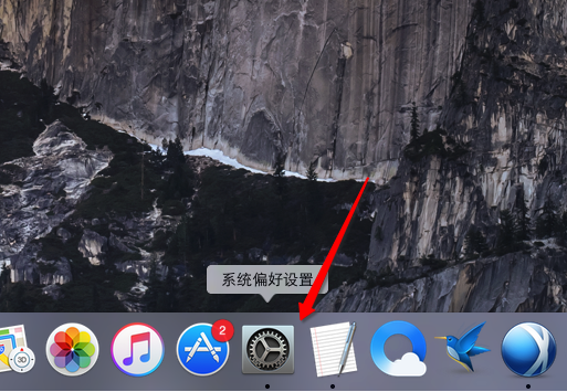 第一步、點擊桌面底部系統(tǒng)偏好設(shè)置圖標(biāo)