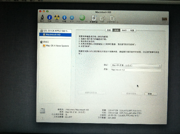2、選擇磁盤工具–然后選擇上面 一般是 Macintosh HD這個選項,右側(cè)選擇抹掉 。意思就是刪除所有內(nèi)容重新安裝新的系統(tǒng)。