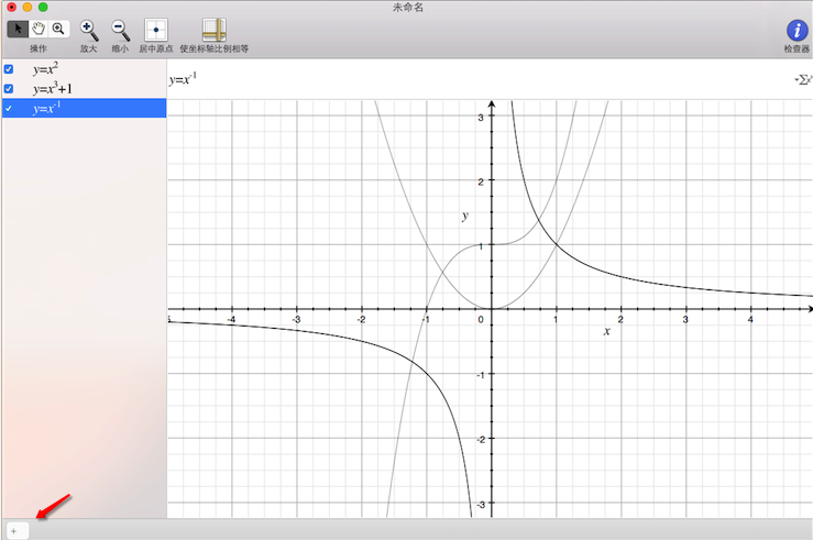3、選擇默認的二元方程圖形后,在如圖所示箭頭處點擊“+”號即可建立方程,小編隨手輸入幾個方程,系統立即就為我畫出了這幾個方程的圖形。