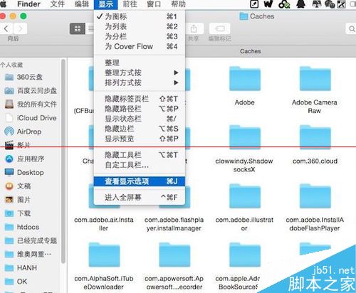 3、在Caches文件夾的時候,點擊上方菜單的:顯示—查看顯示選項(或者Command+J)-在這里面把“計算所有大小”的對號點上
