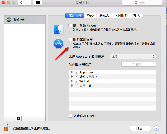 用戶可以為家長控制帳戶設置指定允許打開的應用程序,可以防止小孩子打開游戲等程序