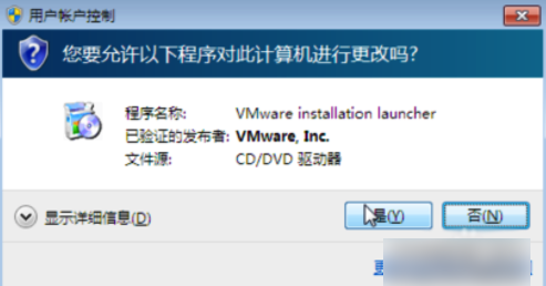 4、接著系統(tǒng)會提示是否要運行 Vmware 的安裝程序,點擊“是”按鈕繼續(xù) 。