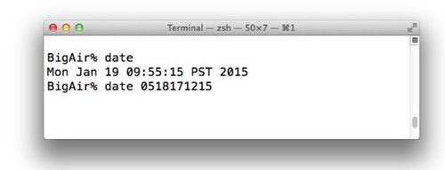 2、為了確定終端日期設置是否解決了該問題重新安裝 OS X,用戶需在“安裝OS X”啟動菜單>命令行,下拉“實用工具’菜單選項,選擇’終端”,然后輸入以下命令:date點擊回車鍵,如果報告日期是當前日期,那么就能找到該問題的原因了,如圖所示: Mon Jan 19 09:55:15 PST 1984 這一行內容非常重要,以為只有日期正確了才能成功安裝 OS X,如果改日期遭遇 OS X 的發布時期,那么就會出現上述的錯誤,所以年份特為重要。如果時間錯誤,有兩種方法進行設置,可以設置為自動調整日期,通過網絡設置要簡單方便一些: ntpdate -u time.apple.com 如果 Mac 沒有網絡訪問就不能進行這項設置,因此,用戶需要使用手動設置。 如果用戶熟悉命令行則可使用 日期-幫助 進行檢索,這種日期格式開起來可能會有點怪—“[mm]dd]HH]MM[[cc]yy]”,其實也就是“月日時分年”,這是一行固定格式,在數字之間不 能加入空格和其他符號,比如將日期設置為:“September 20 2016 at 17:33′′,用戶可看到以下語法: date 0920173316 這看起來像是一組隨機的數字,但其實就是月份09,時間1733,年份16,幾個時間組成的。