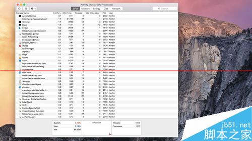 想要找出系統運行出錯的地方,可以使用內置的活動監視器,點擊進入 Finder,在導航欄內找到 應用程序>實用工具>活動監測器,打開活動監測器,所有正在運行的應用程序都會顯示出來,包括每個軟件所占的 CPU,內存,網絡等數據信息,隨便雙擊一個應用程序,都會彈出一個獨立窗口,顯示出當前應用程序的更多相關信息以及目前狀態,用戶可選擇 取樣,便會獲得此程序在一段時間內的活動報告,但這個程序太過專業化,可能很多用戶會看不明白,所以,接下來再介紹一種更實用的強制退出的方法。