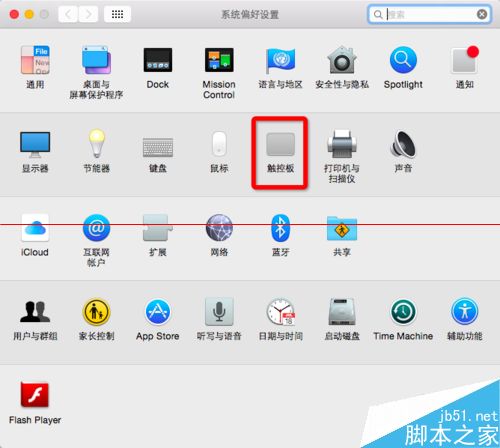 2、在“系統偏好設置”的第二欄點擊“觸控板”。