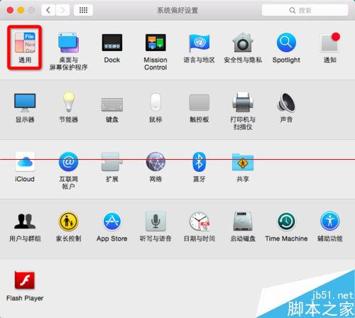3、在“系統偏好設置”的第一欄點擊“通用”。