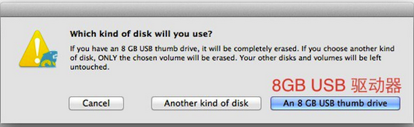 第四步:隨后,我們需要選擇安裝 U 盤,DiskMaker X 支持 U 盤以及其他外置儲存器,容量8GB 的 U 盤就夠了。
