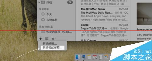 3、接著在出現(xiàn)的菜單里,請點擊“新建智能郵箱”選項,如圖所示