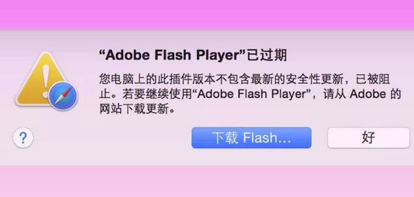 有用戶遇到在mac上看在線視頻或瀏覽某些網站的時候總顯示Flash已過期,需要下載新的版本,可是到adobe官網也沒看到更新信息。原來出于安全顧慮,蘋果目前在Mac上 OS X系統里已經遠程屏蔽了所有版本的 Adobe Flash Player插件。包括剛發布的 16.0.0.235,以及較老版本 13.0.0.259,都在屏蔽名單中。用戶在使用Safari瀏覽器訪問 flash 內容時,將會收到插件已攔截、Flash 安全警告、Flash 過期等提示信息。