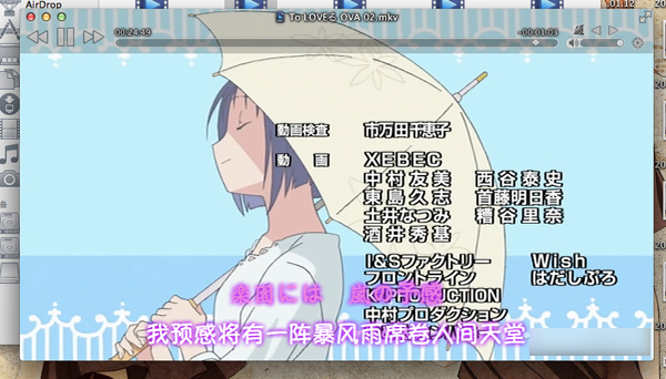 附上MPLayerX(第一張截圖)和Movist的字幕排版加以說明問題。圓圈內(nèi)是字幕,此時(shí)Movist歌曲時(shí)間線覆蓋了人物對話時(shí)間線。