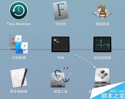 1、首先請將 U 盤插入 Mac 的 USB 端口,在 Mac 系統中打開 BootCamp 工具,如圖所示