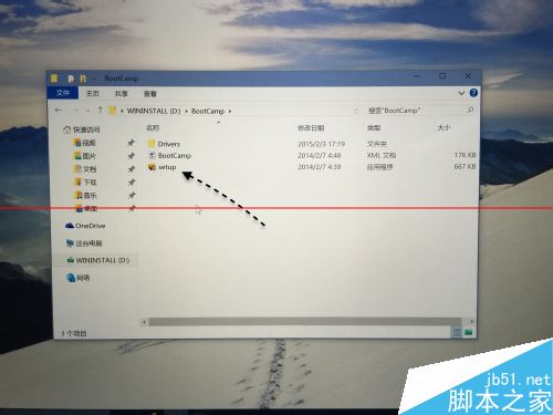 3、在安裝好以后,請打開 U 盤啟動盤,在 BootCamp 目錄下,雙擊打開 Setup 安裝程序,可以為 Windows10 安裝 Mac 電腦的硬件驅動。