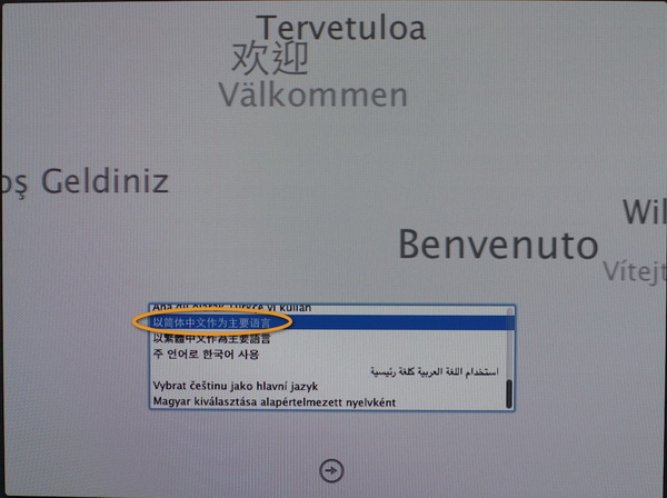 系統安裝完成后會自動重啟。系統啟動后就看到了“歡迎”界面。之后的操作就和剛買來新的Mac一樣設置即可。
