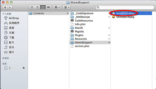 在“Contents”文件夾中進入“SharedSupport”文件夾并找到“InstallESO.dmg”文件。