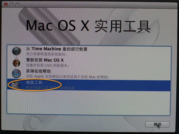 系統會退回到Mac OS X 使用工具界面。選擇“重新安裝Mac OS X”,單擊“繼續”。