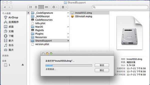 雙擊運行“InstallESD.dmg”文件并等待加載完成。