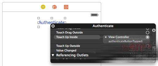 點擊ViewController.h并定義一種新操作,authenticateButtonTapped,它會觸發整個驗證流程。ViewController類的界面外觀應該如下所示: