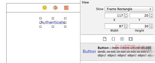 打開Main.storyboard并將一個Button拖拽到控制器的視圖當中。變更該按鈕的標簽以使其讀取為Authneticate。
