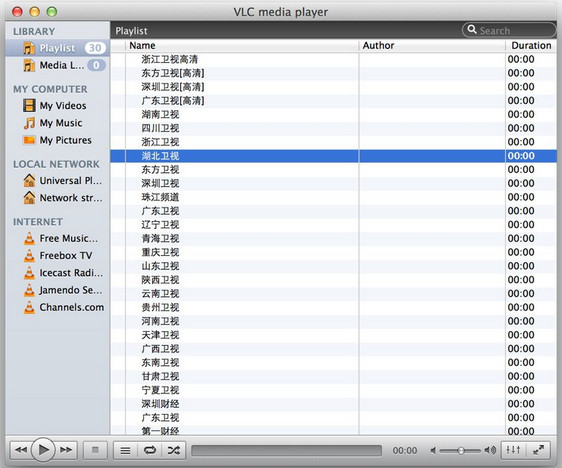 第二步,下載tvmac.m3u.zip 文件,將其拖到打開的VLC播放器里頭,然后打開,你會發現效果下圖所示,這個文件里頭是些什么東西呢?以一些網友們打包好的電視臺網絡流媒體播放網址。