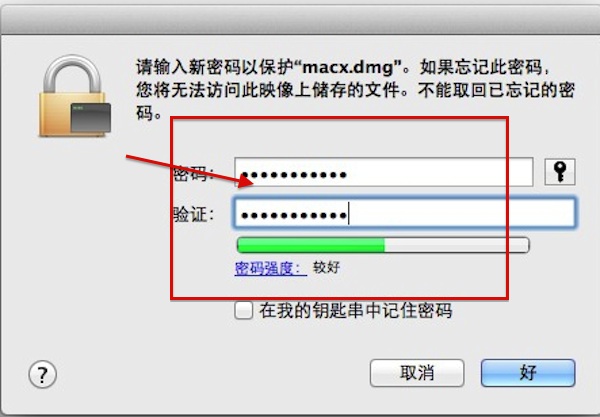 5、設置密碼,記得把下面在鑰匙串記住密碼的對號去掉。