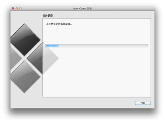 10、點擊安裝后,Boot Camp助理會開始分區,并在分區完成后自動重新啟動電腦。