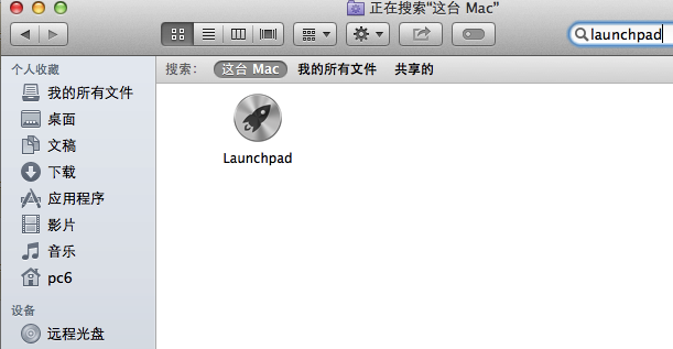 其實,要找回“Launchpad”圖標很簡單,在你的Finder里面,選擇這臺Mac,直接搜索“Launchpad”你就會欣喜的發現“Launchpad”出來了,然后將其重新拖到Dock當中就可以了。確實很簡單吧?